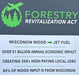 FutureWood Corp/Johnson Timber announced a partnership with a Swiss Corporation to form Synthec Fuels Wisconsin, a proposed Sustainable Aviation Fuels (SAF) Biorefinery in Hayward. The project team is working with the State Legislature on support through the Wisconsin Forestry Revitalization Act, which was shared at the event. Key points about the biorefinery and the Act were discussed by several speakers and further explored by DJ Aderman (President, FutureWood Corporation/Johnson Timber) at the FRA Lake States Region Fall Meeting in October.