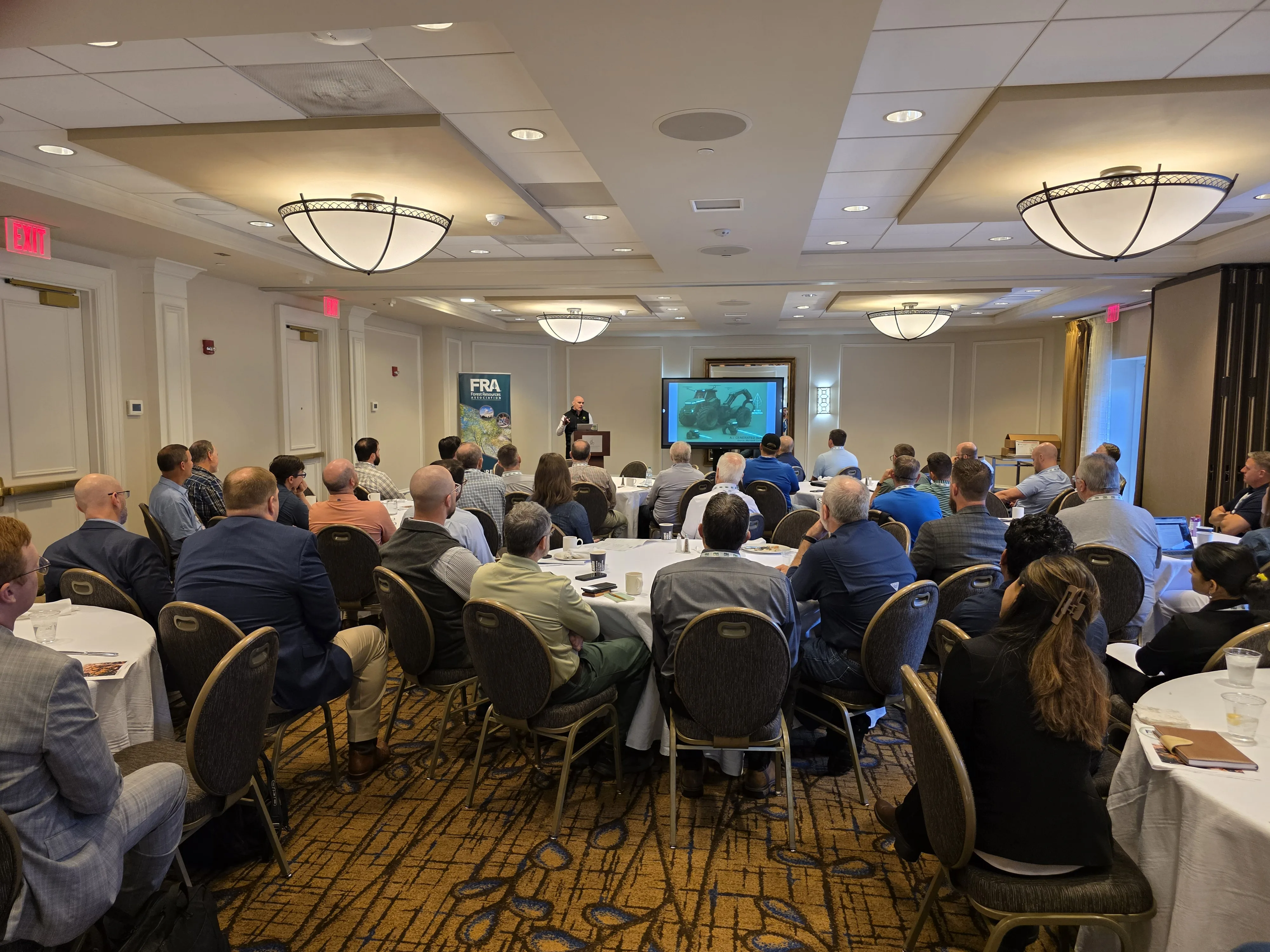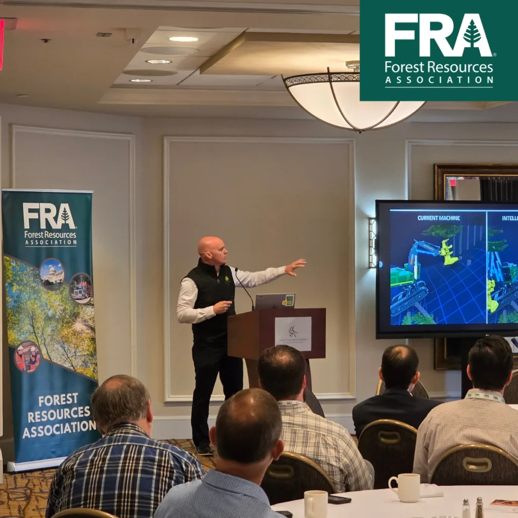 Over 70 FRA members and guests convened in Auburn, AL, at The Hotel at Auburn University and Dixon Conference Center on March 10 -12, 2026, for FRA’s 2026 Southwide Region Spring Meeting. The event began on Tuesday evening (March 10th) with a Welcome Reception and Dinner. FRA was graciously invited by the Alabama Forestry Association (AFA) and the Forestry Workforce Training Institute to join them at their Auburn Area AFA Regional Reception at Auburn Oaks Farm in Notasulga. A great time was had by all who attended. FRA would like to thank AFA President Chris Isaacson and Senior Director of Administration Liz Chambers for an outstanding evening of networking and fellowship. The Spring Meeting officially began on Wednesday morning (March 11th) with the Southern Region Council on Forest Engineering (SRCOFE) group’s biennial meeting. SRCOFE routinely joins forces with one of FRA’s southern regions for a Spring Meeting during even- numbered years. An outstanding Keynote Presentation was delivered by Justin McDermott, Forestry Division Sales Manager for North America – John Deere. Justin provided a snapshot of in-woods equipment innovation and how John Deere is well-positioned to remain on the cutting edge of technological advancements in forest operations.